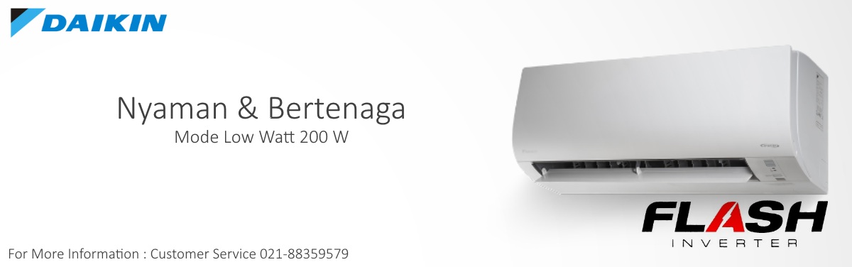 Seri flash Inverter adalah salah satu AC Inverter terbaru dari keluarga AC Daikin Inverter. Dengan memiliki fitur 3D Airflow, Super PCB yang mampu membuat AC beroperasi meski tegangan listrik rumah anda tidak stabil. Sehingga membuat Anda tidak perlu khawatir tentang resiko AC Inverter anda cepat rusak.